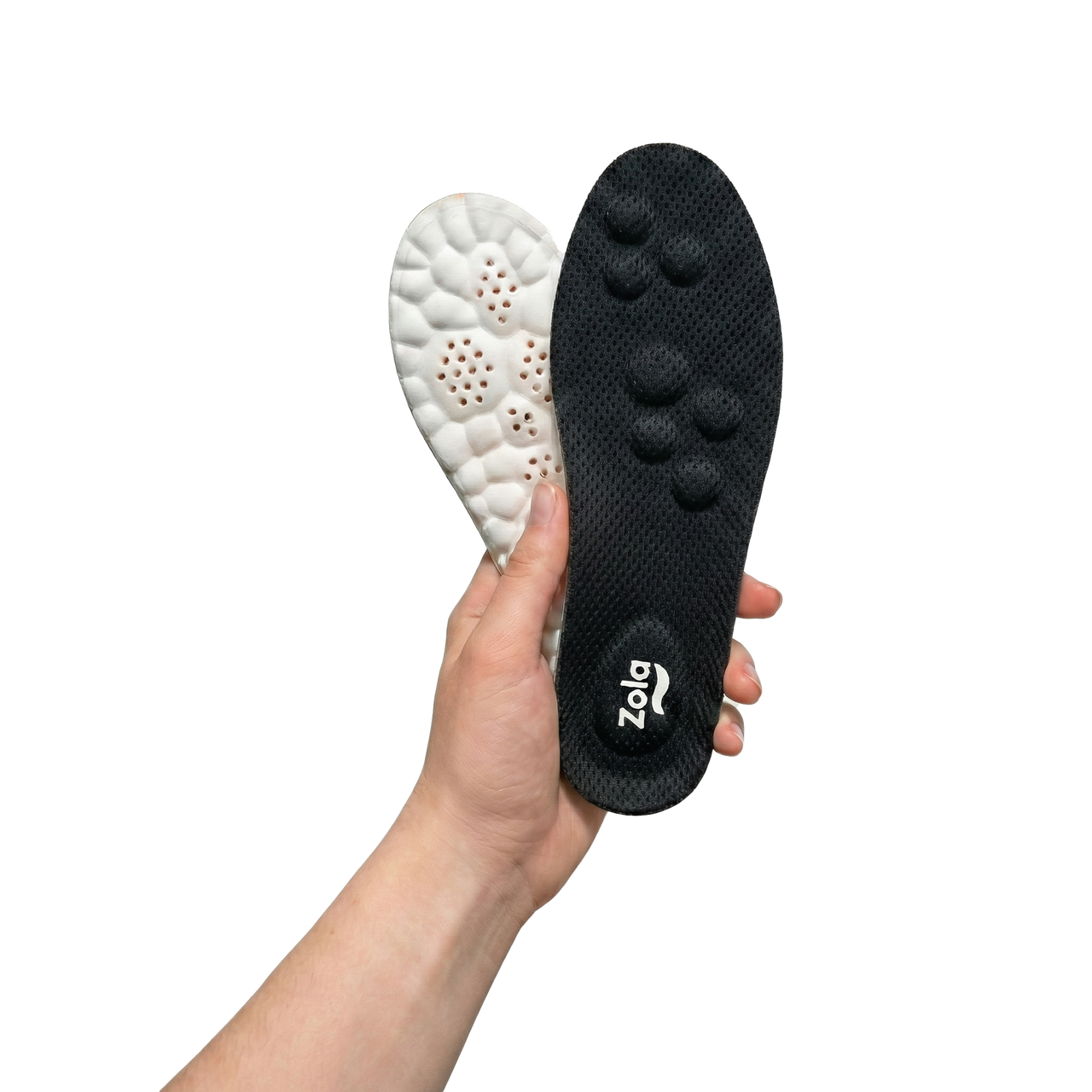Geen ingewikkelde oplossingen. Gewoon inlegzolen die doen wat ze moeten doen: je voeten ondersteunen, druk verlagen en lopen weer prettig maken